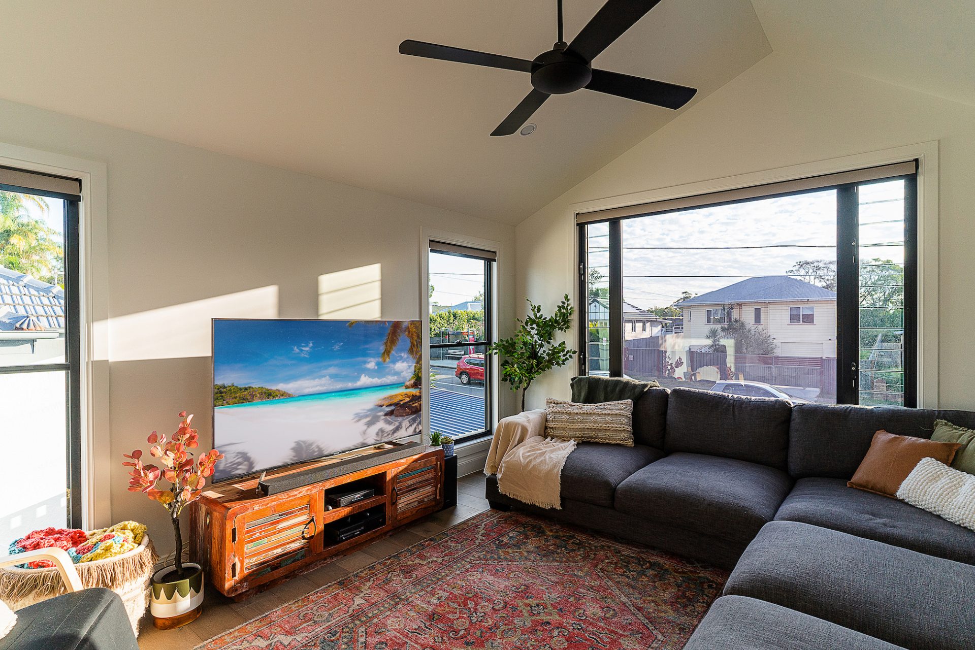 New front windows installed on the western walls were double glazed using Bradnams ‘Solarblock’ film which provides up to a 36 degree reduction in heat gain. Louvre windows were also added to the new windows in the family room, and along with large stacking doors installed in the rear master bedroom, the home now benefits from natural cross ventilation.