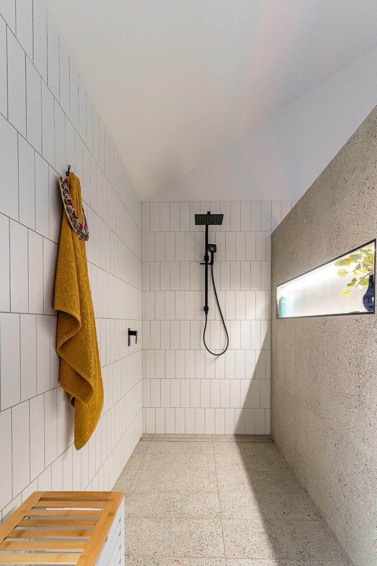 The roof was carefully considered and designed to be A-Symmetrical to add a point of difference to the home. The northern roof pitch was designed and built to a perfect 32.5 degree angle to allow for solar panels to be added and for those panels to achieve maximum solar efficiency.