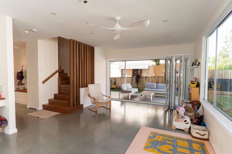 A large sashless window was added to the rumpus room for an unobstructed view to the nearby pool. Bifold doors were also installed in both the rumpus and family rooms opening up the internal space onto a family sized patio equipped with outdoor kitchen.